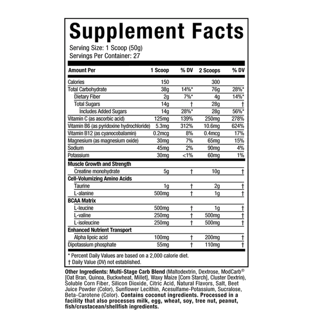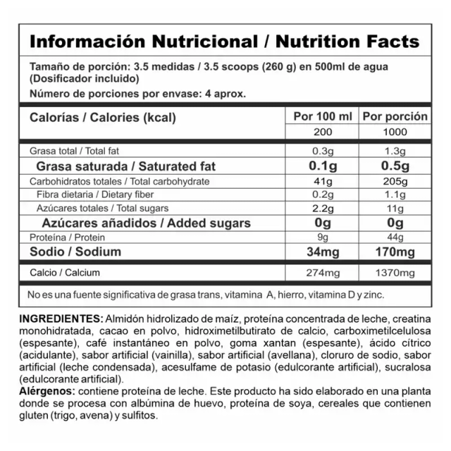 La mejor proteína hipercalórica con 44g de proteína, 3.000 mg de creatina, 500 mg de HMB, BCAA y 1.000 calorías por porción. Edición Limitada con 21% más contenido y sabor a Cookies & Cream. Sin azúc.