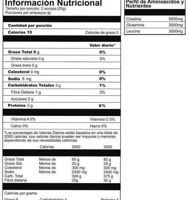 Es una glutamina 100% pura, ofrece 5g de la glutamina más pura por porción, reponiendo la glutamina consumida durante el entrenamiento.