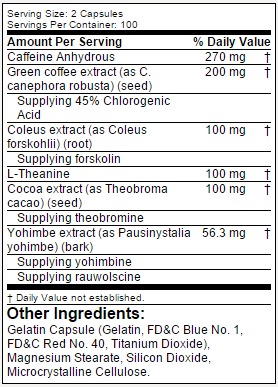 Quemador avanzado para pérdida de peso. Contiene ingredientes aprobados por la FDA: extracto de naranja amarga, picolinato de cromo, CLA, L-carnitina, cafeína, taurina y goma guar.