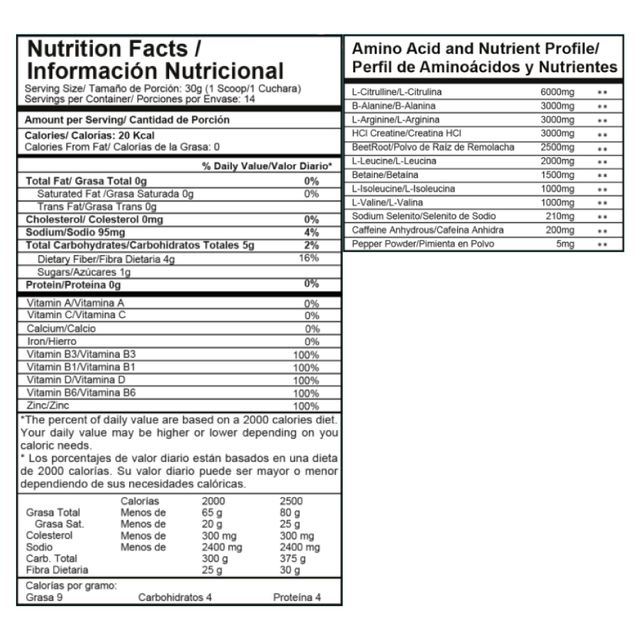 Combina aminoácidos micronizados, extractos de té verde y café, cafeína y l-arginina. Mejora la recuperación, rendimiento, masa muscular, síntesis proteica, energía y tiene un delicioso.
