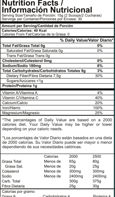 Mezcla para preparar bebida energizante en polvo 125 g.