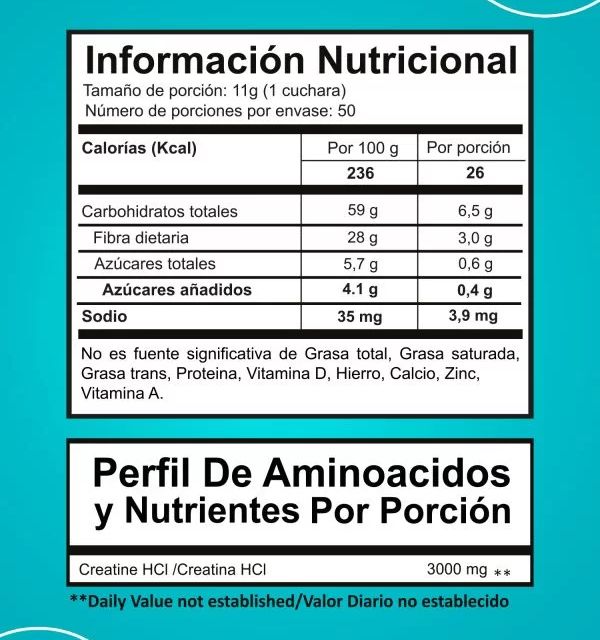 Presentación: 350 gramos 70 porciones. Sin Sabor.