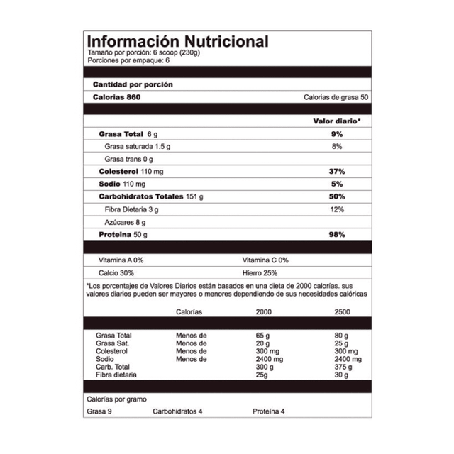 Ayuda a aumentar tu peso con una fórmula combinada de hidratos de carbono y proteínas.