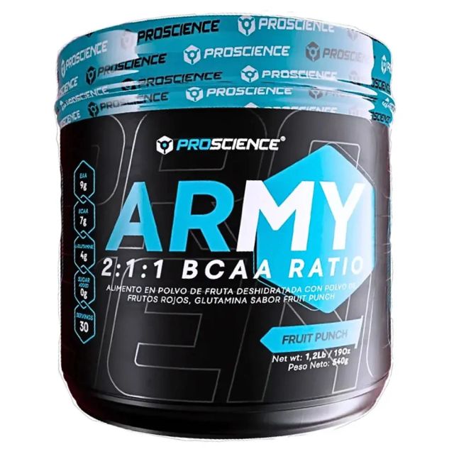 Army BCAA, un suplemento de aminoácidos de cadena ramificada diseñado para apoyar su régimen de entrenamiento de manera efectiva.