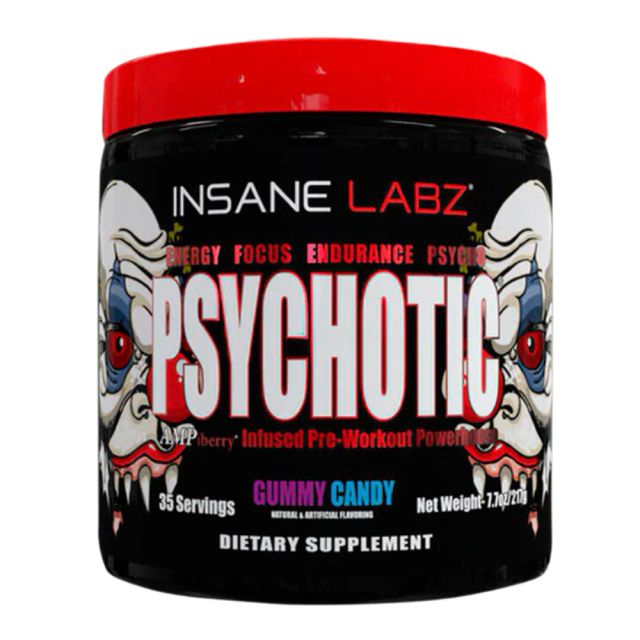 Psychotic Pre Workout Gummy Candy 217 gr de Insane Labz es un pre entrenamiento en polvo adicionado con el ingrediente Ampiberry.